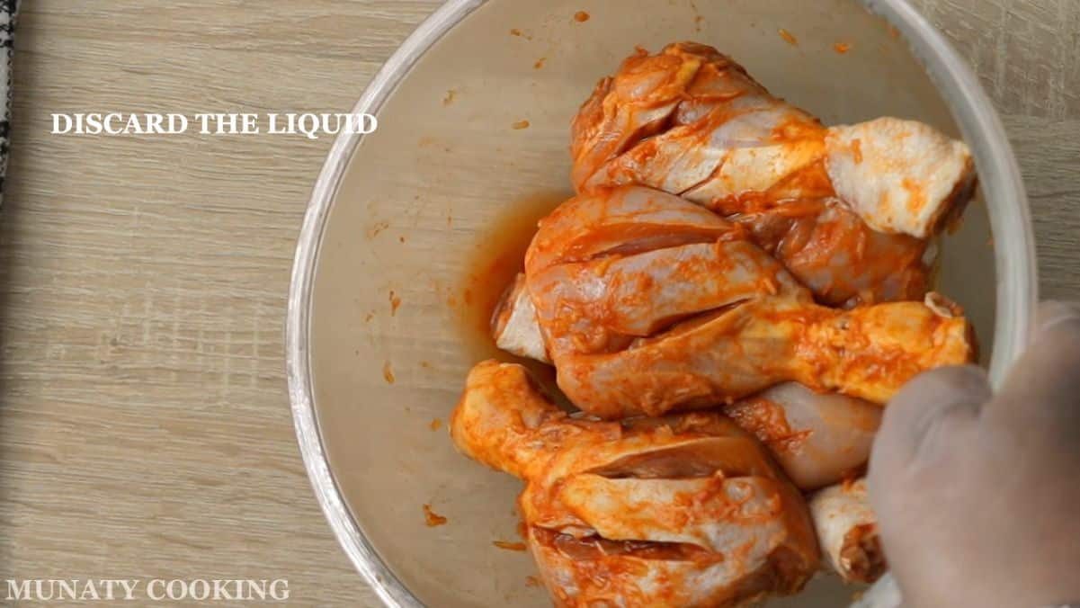 Make deep cuts on the chicken: To make sure that the marinade penetrates deeply, make deep cuts to the bone on all the chicken legs. This will not only flavor the chicken thoroughly but also help it cook faster.